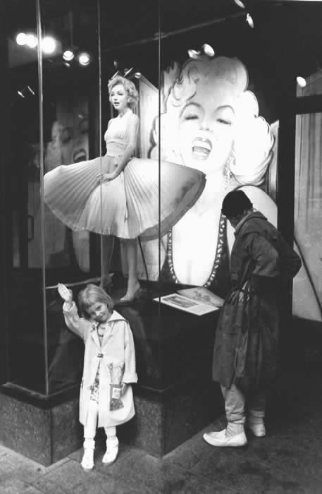 On Fifth Avenue: Barbara and bag lady with Marilyn