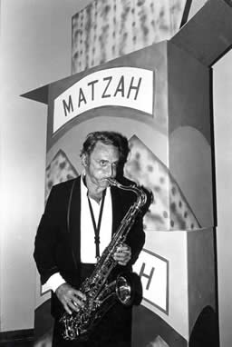 Larry Rivers plays sax at his opening, the Jewish Museum.