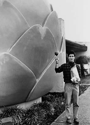 Cornell Capa with Harold Edgerton's Milk Drop. Andy Grundberg at the Giant Artichoke in Castroville, CA.