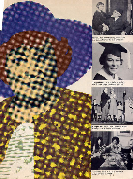 The photograph above is of Bella at the Battery, the first time I saw Bella. I had neard her interviewed on the radio, and her voice made me think I wanted to meet her. It was 1972. She was protesting the jerrymandering of her district on Manhattan's Upper West Side, and the news report announced the time of the press conference. I heigh-tailed it down to the other end of Manahttan, and I was so excited, I dropped my lens as I was kneeling at her feet to take the pictures. I brought the photographs up to her campaign headwuarters, met Mim Kelber, and this one was chosen for some super large posters for her campaign, as well as for this flyer.