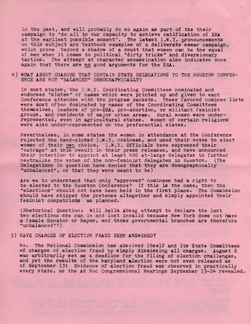 Diana Mara Henry kept ephemera of the events she photographed, as here, Phyllis Schlafly's press conference at the time of the First National Women's Conference in Houston, 1977 and the materials Schlafly produced opposing the ERA, IWY, and BElla Abzug - "ABZUGATE".