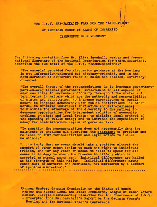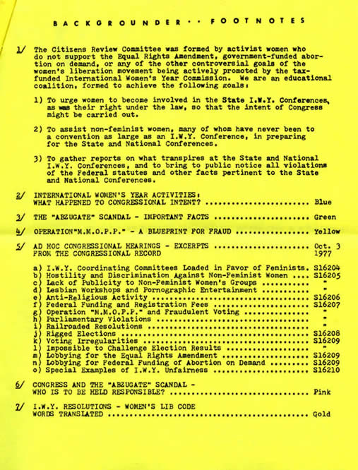 DMH Spotlight - Files of Diana Mara Henry include ephemera of the Citizen's Review Committee against IWY, Houston, 1977 Back
