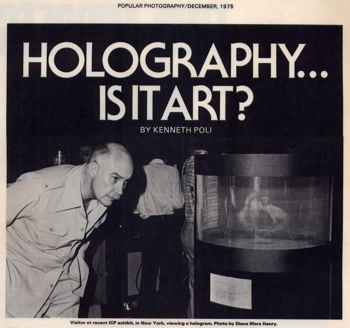 Holography opening at the ICP, photo by Diana Mara Henry for Popular Photography, 1976. All photographs Copyright © Diana Mara Henry. Contact us for permission to reproduce them or to schedule an illustrated lecture.