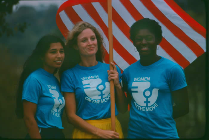 Sylvia Ortiz, Peggy Kokernot and Michele Cearcy, last mile torch runners.Copyright©1978 Diana Mara Henry