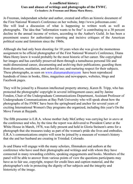 Also please email Diana Mara Henry for access to her 1,200 images of the Houston conference and her account of how she photographed it.