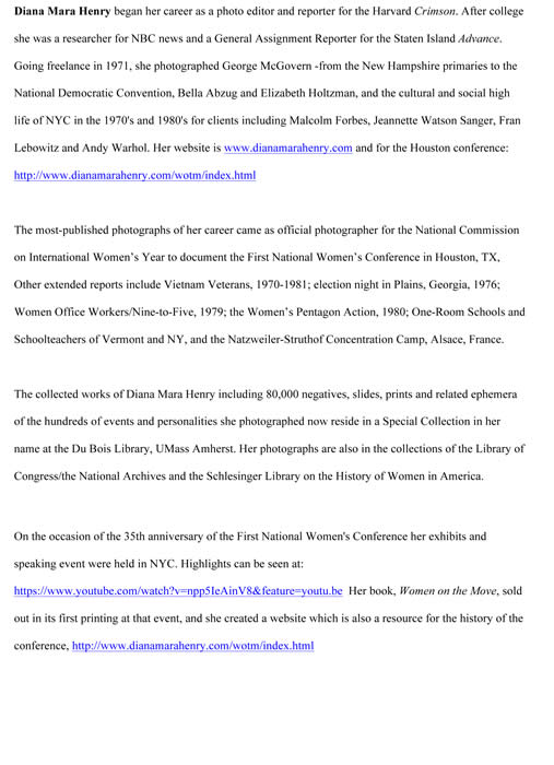 Go to Diana Mara Henry main website: www.dianamarahenry.com Go to website about the 35th anniversary celebration in NYC