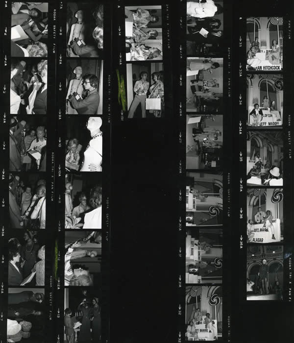 Boys and girls, a contact sheet was made in the darkroom by placing the film directly onto photographic printing paper. No editing has been done to this shoot- every photograph is preserved for you to enjoy and help identify! We know there are photographs here of Anne Klein and Vera Gawansky. Please email us now if you want to view a larger version of these.