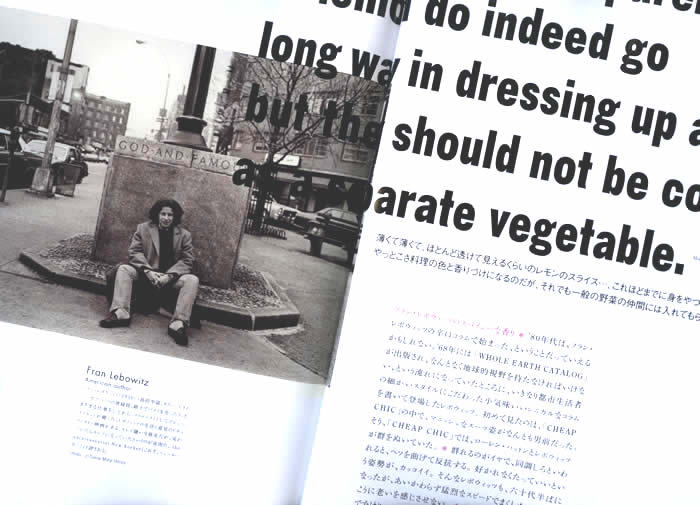 May, 2015 Takashimaya Salon for its private clients featured Jacques Prévert and Bernard Buffet, Coco Channel, Jack Kerouac and Allen Ginsberg, oh - and Fran Lebowitz and Diana Mara Henry! A double-page spread with quote from Metropolitan Life, p.140:"Thin, almost transparent slices of lemon do indeed go a long way in dressing up a meal by they should not be counted as a separate vegetable." Hope you like.