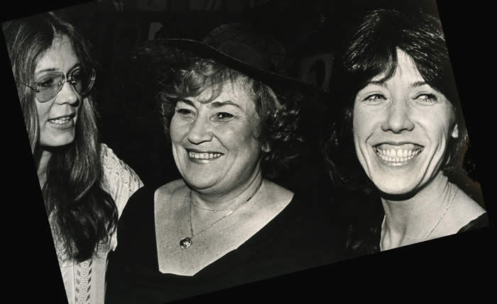Gloria Steinem, Left, and Lily Tomlin, right, flank Bella Abzug