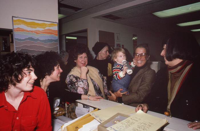 MS magazine office press conference, January 1979, in solidarity with Bella Abzug after Abzug’s dismissal by President Carter from the chairmanship of the National Advisory Committee on Women. Left to right: