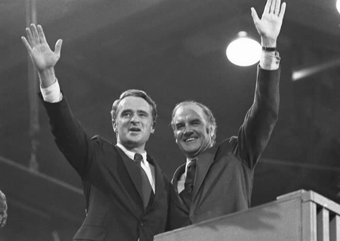 Senator Thomas Eagleton of Missouri died March 4, 2007 at age 72. He was chosen at the Democratic National Convention in Miami Beach, where this photograph was taken, to be George McGovern's Vice-Presidential running mate. He was forced out of that position when it was discovered that he had undergone electro-shock treatment for depression..