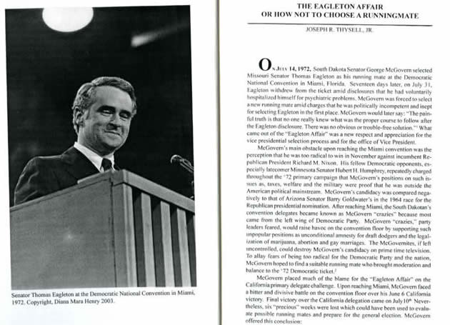 Great Plains Journal, Volume 39, Year 2003, "The Eagleton Affair, Or How Not to CHoose a Runningmate," by Joseph R. Thysell, Jr.