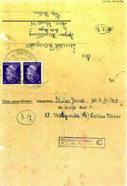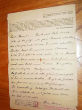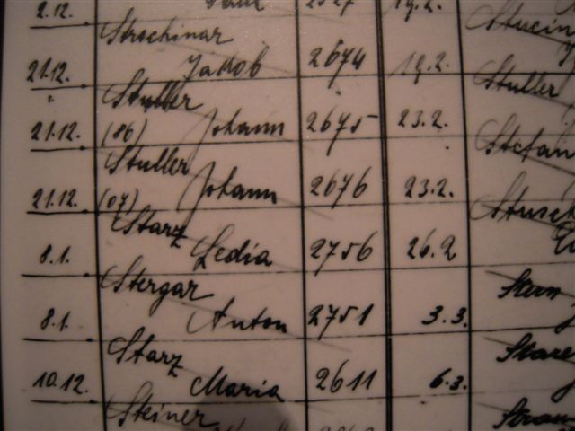 From Ljubljana my father was sent to a prison in Begunje - a well known prison where immediate executions of political hostages took place either by shooting or hanging. Last fall I visited the Museum of Hostages in Begunje (Slovenija) and among the hand-written records could find his name and the date of arrival: 21.12 (December 21) Johann Stuller (07), Prisoner No. 2676. For some unexplained reason, my father and others were not executed but moved to Dachau. (I have several letters from Dachau)."