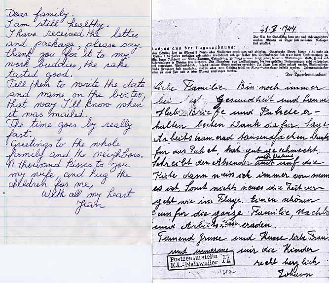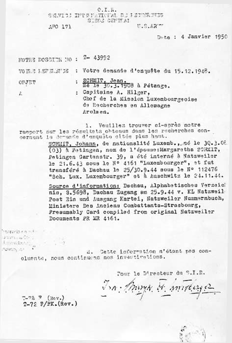 More concentration camp letters and documents relating to the internement and disappearance of Jean Schmit follow.