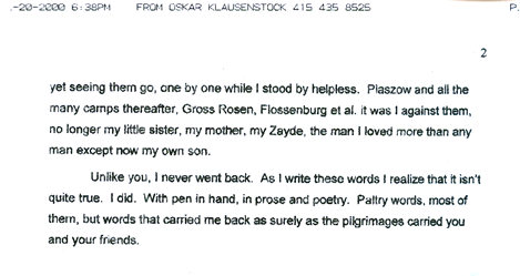 Klausenstock was the only one of 38 family members to survive the Holycaust.