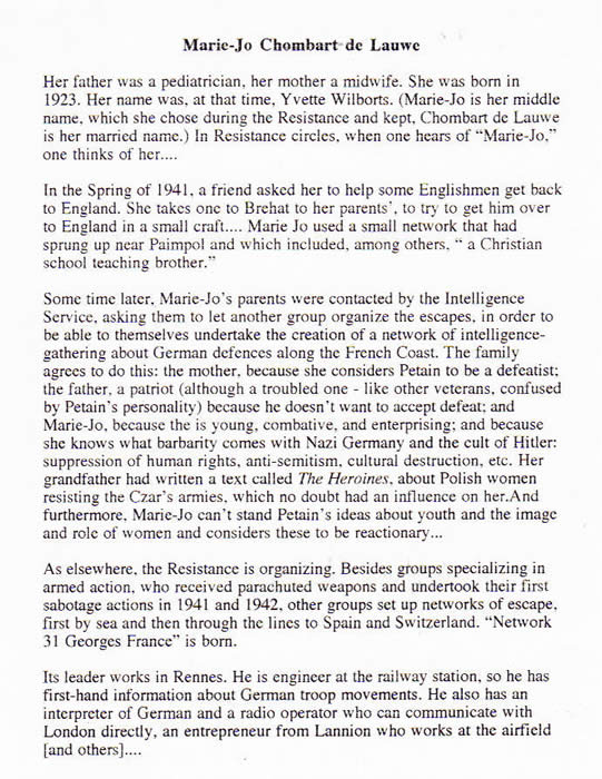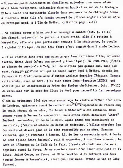 It is with emotion and interest that I read your manuscript transmitted by Patrick Bruneteaux [of the Sorbonne, who received it from DMH.] Your memoirs do indeed evoke for me the Resistance in Rennes in 1941 and 1942.....