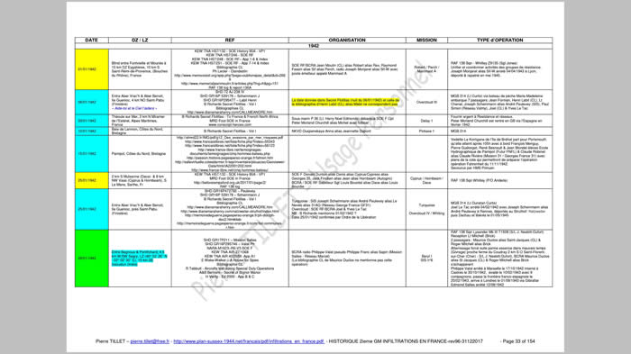 Tentative of History of In/Exfiltrations into/from France during WWII from 1940 to 1945 (Parachutes, Plane & Sea Landings) by Pierre Tillet, page 33 of 155: