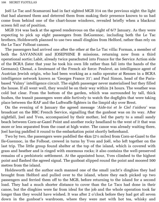 On the first of February, Joel and Yves Le Tac board the MGB submarine chasing vessel. André Peulevay, the head of the railroad network in Rennes, the Intelligence Service network which Joel was collaborating with, accompanied them in the crossing that returned them to the coast of Brittany. He’s got a brand new radio. Each has a great deal to do in the weeks to come. André Peulevay of course heads straight back to Rennes...."