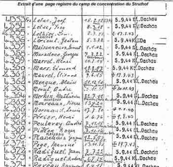 •US Holocaust Museum. Registry of Jewish Holocaust Survivors. Washington, DC. Lists survivors by camps, including 32 from Natzweiler when searching by "Natzweiler-Struthof": André's record: http://www.ushmm.org/online/hsv/person_view.php?PersonId=4987387